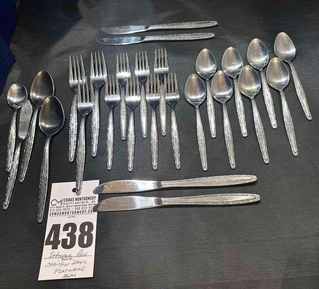 LOT 438 - 26 pcs - Interpur Rose Stainless Steel Flatware
