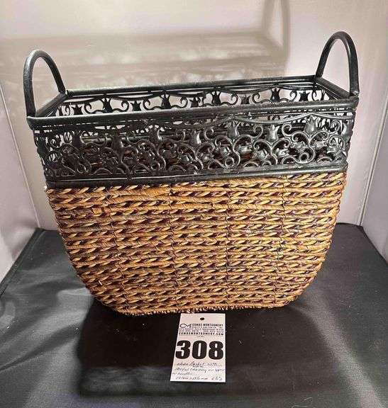 LOT 308 - Woven Basket with Metal Carving on upper side with handle