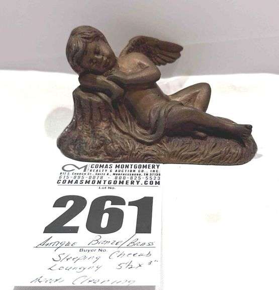 LOT 261 - Antique Bronze / Brass Lounging Cherub