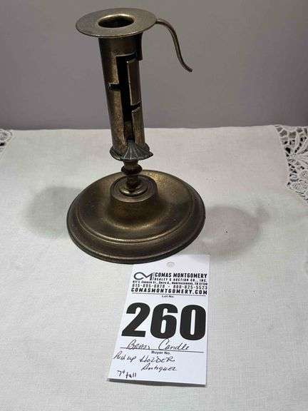 LOT 260 - Antique Brass Candle Push Up Holder
