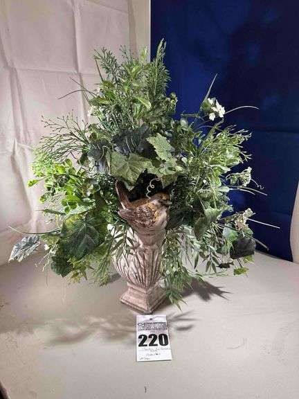 LOT 220 - Center Piece / Planter with greenery and a bird