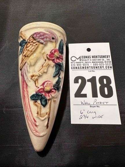 LOT 218 - Wall Pocket - Cream with bird & red flowers