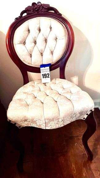 LOT 192 - Antique Rose Carved Tufted Chair - Solid Cherry