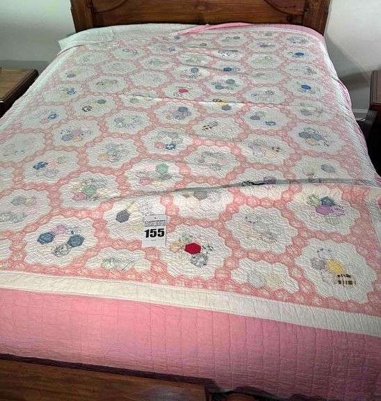 LOT 155 - Antique Quilt "Pink" "Grandmother's Flower Garden"