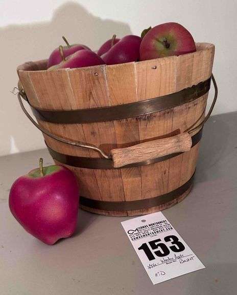 LOT 153 - Vintage Wooden Apple Basket with Plastic Apples