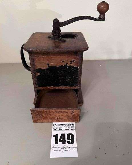 LOT 149 - Antique Coffee Grinder - Cast Iron & Dovetail