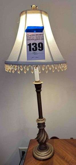 LOT 139 - Antique Lamp with Crystal tear drop shade