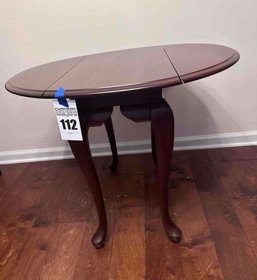 LOT 112 - Queen Anne Drop Leaf Round Side Table - Solid Cherry
