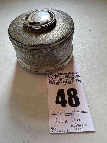 LOT 48 - Antique Powder Puff Box w/ Mirror Compact on top