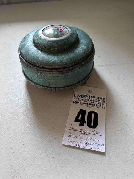 LOT 40 - Vintage Metal Powder Box w/ Amber Depression Glass Insert