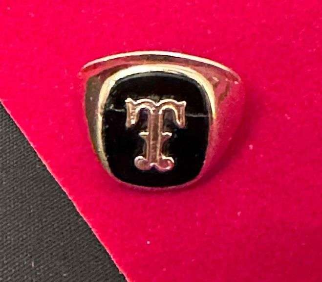 Onyx & Gold "T" Signet Ring Size 11 with current appraisal value
