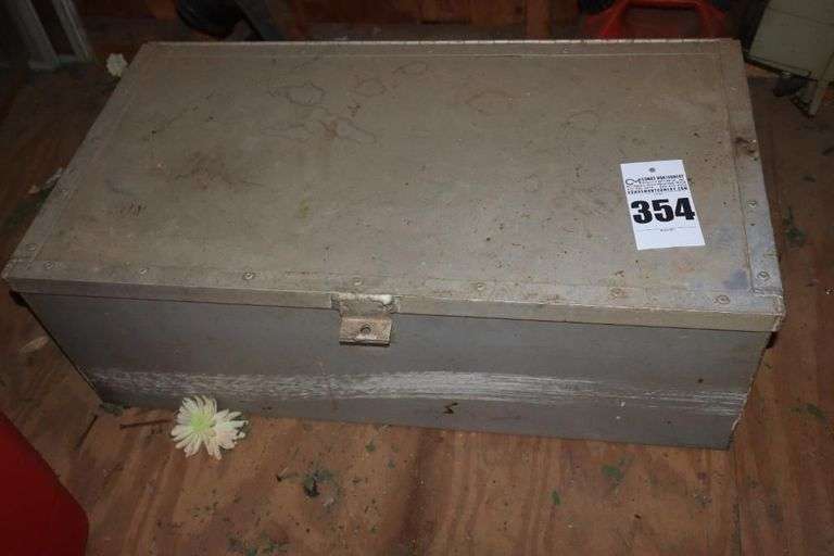 LOT 354 - Aluminum Tool Box with inside shelf, 2 Testers & variety of hand tools (staple gun, plyers, etc.)