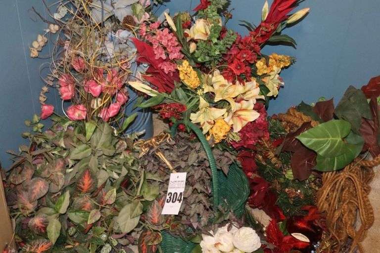 LOT 304 - Variety of Artificial Plants & Arrangements - different containers & hanging Baskets
