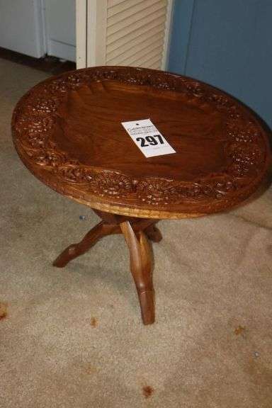 LOT 297 - Unique Solid Wood Table with Thai Treasures - Handmade in Thailand - Carded Top and unique intwined legs 18"x20"x20" **Matching Lots #296 & 298