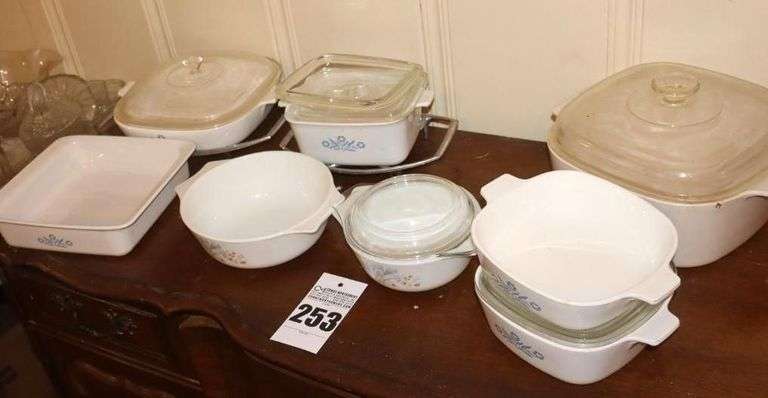LOT 253 - Variety of Corning Dishes - Several with lids - different designs & 2 holders