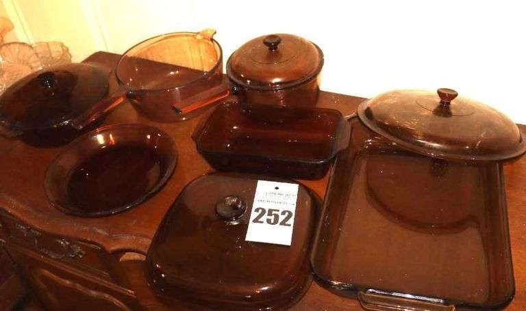 LOT 252 - Variety of Brown Colored Cookware & Baking Dishes - 99x13, lidded pots, pie, dish loaf etc.