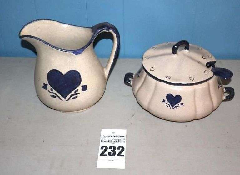 LOT 232 - Variety of Pieces of Ceramic items: Pitcher & Lidded Dish and ladel with similar design **Matching Lots #231