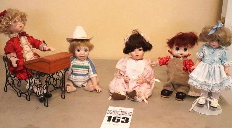 LOT 163 - Variety of Porcelain dolls - Kais boy with Hat, Boy Harold by Fred Thompon, Hamilton House Girl with Bubble, Teacher at Desk & Porcelain doll on stand