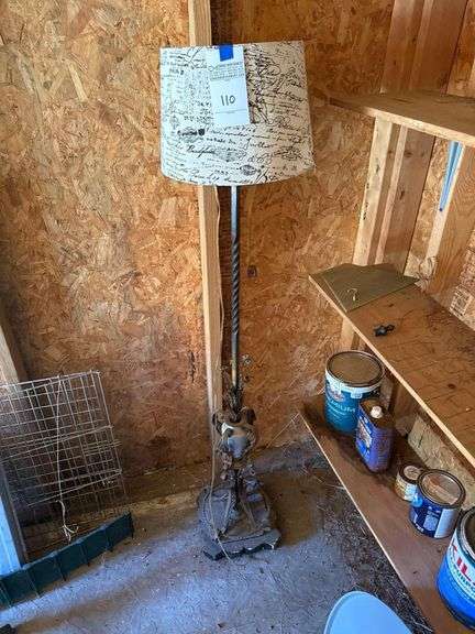 LOT 110 - Wrought Iron Floor Lamp with Decorative Elements
