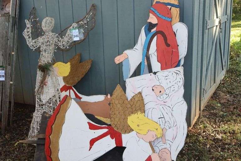 Lot 21:Bradford Exchange Thomas Kinkade Hawthorne Village Nativity "Star of Hope" Collection: 4 Characters - Heavenly Angel (C7770), King Melchior (C7770), In the Lord's Flock (A0982) & The Miracle animals (A0982) Each piece is hand-painted bisque porcelain and most are numbered with certificate ****Lots #18 - 31 have pieces of collection